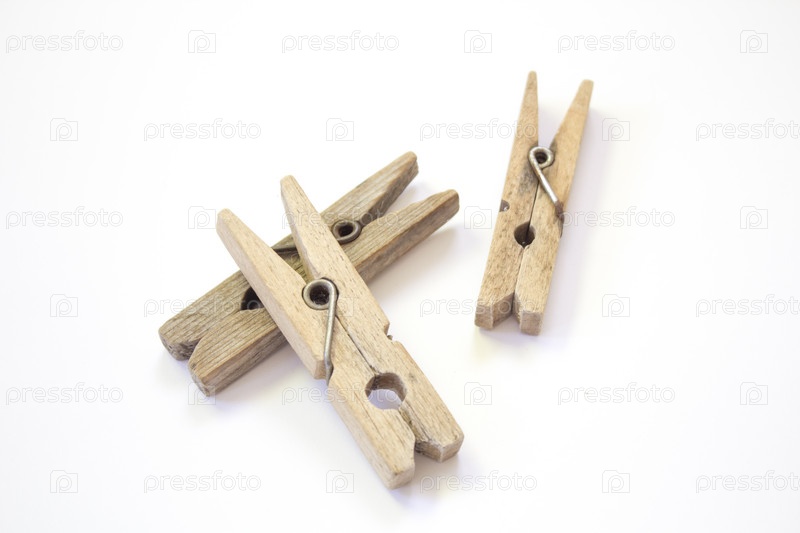 Деревянные прищепки на белом фоне