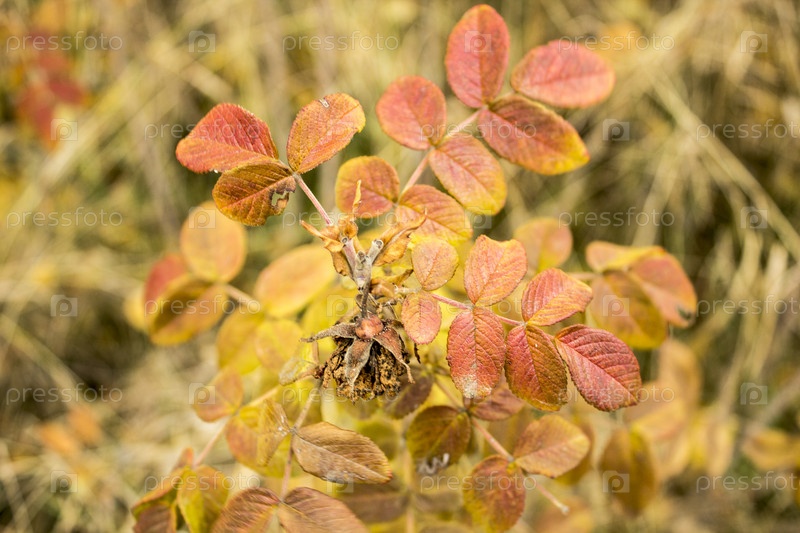 Ветка шиповника в конце осени