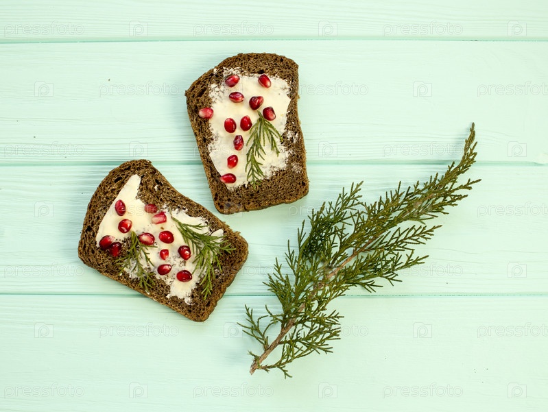 Бутерброды с маслом и ягодами граната