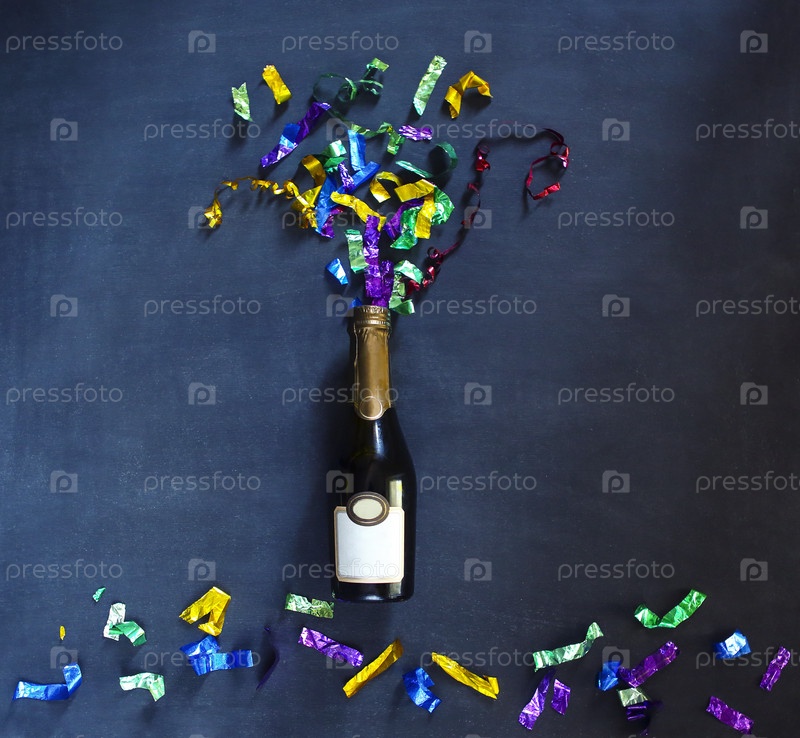 Бутылка шампанского на черном фоне