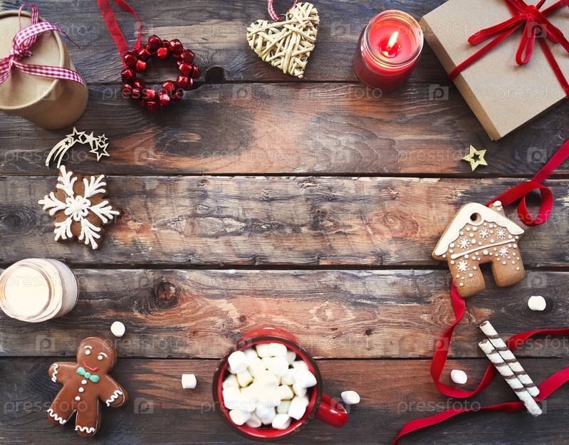 Рождественский фон с украшениями и свечами