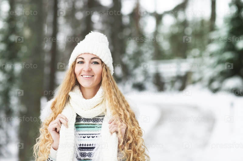 Молодая красивая девушка в зимнем лесу