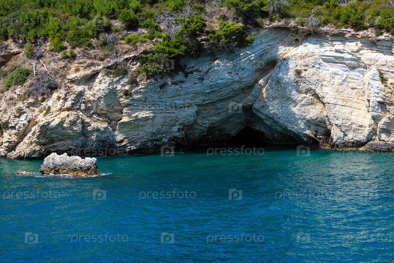 Летний каменистый морской берег, Гаргано, Апулия, Италия