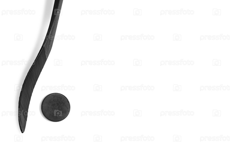 Хоккейная шайба и клюшка на белом фоне