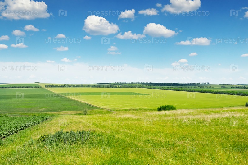 Зеленое поле и голубое небо