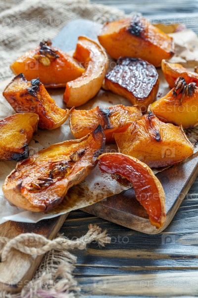 Ломтики тыквы жареные с медом на пергаменте
