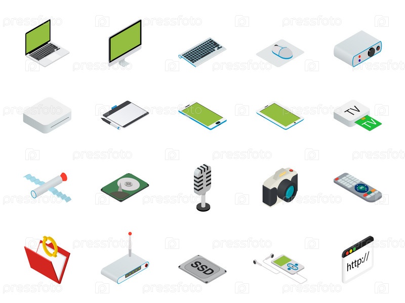 Изометрические иконки компьютерной техники