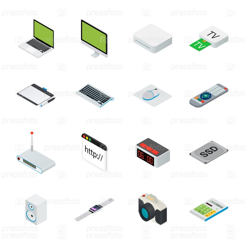Изометрические иконки компьютерной техники
