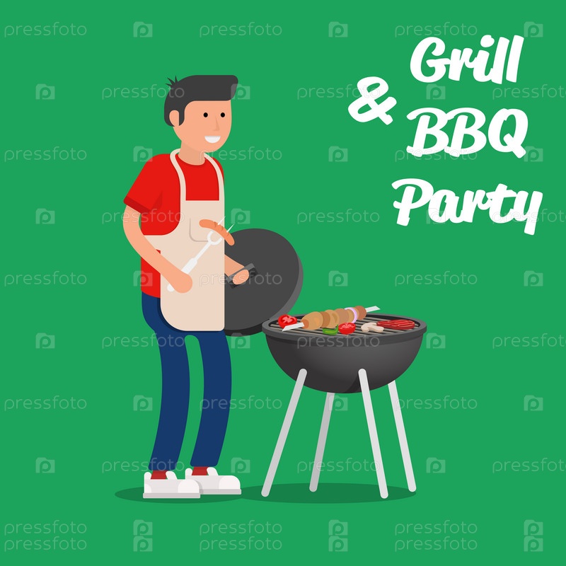 Человек готовит мясо на гриле