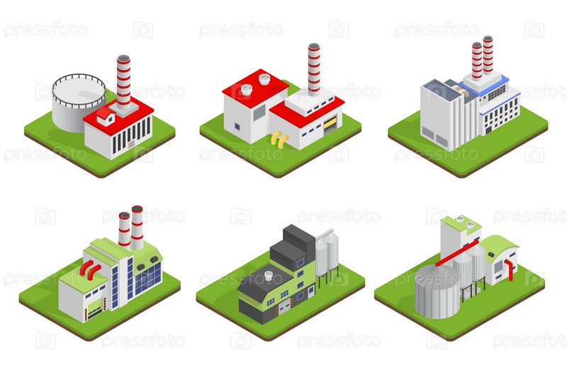 Иконки промышленные здания и заводы
