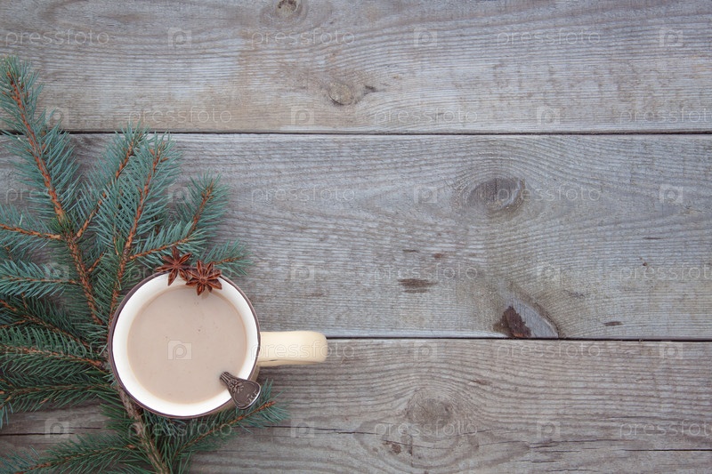 Чашка какао с веткой рождественской елки