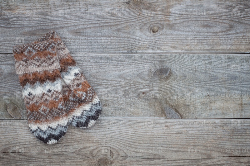Трикотажные коричневые шерстяные варежки