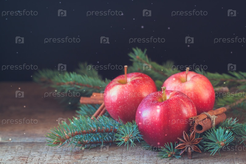 Рождественские яблоки с корицей и ветвями рождественского дерева