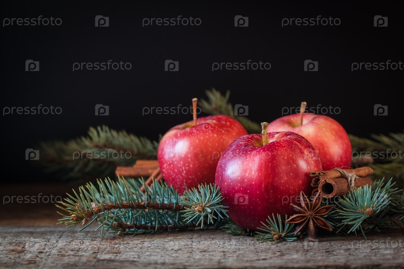 Рождественские яблоки с корицей и ветвями рождественского дерева