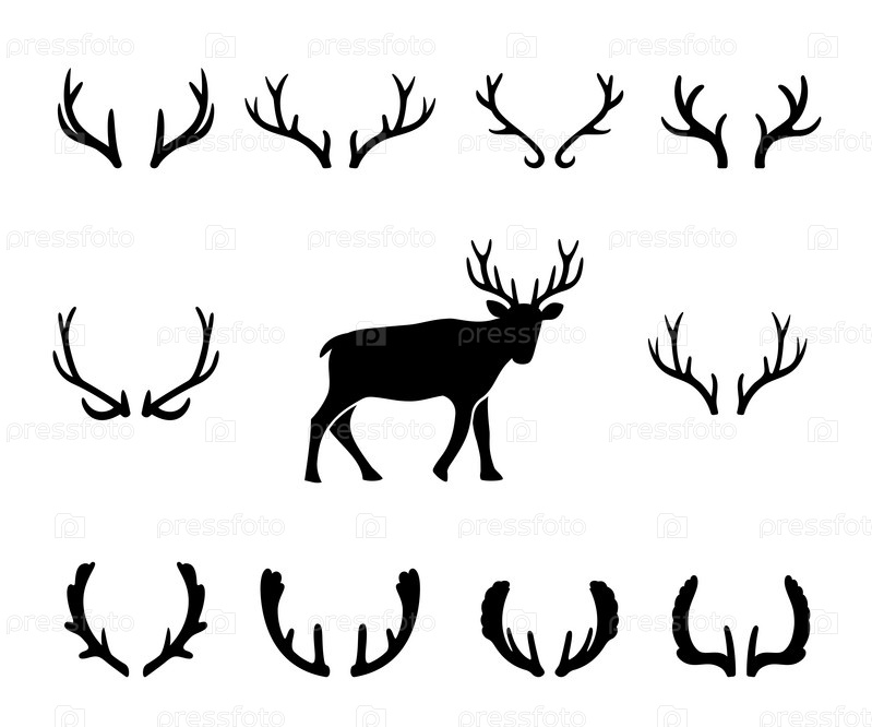 Черные силуэты различных рогов оленей