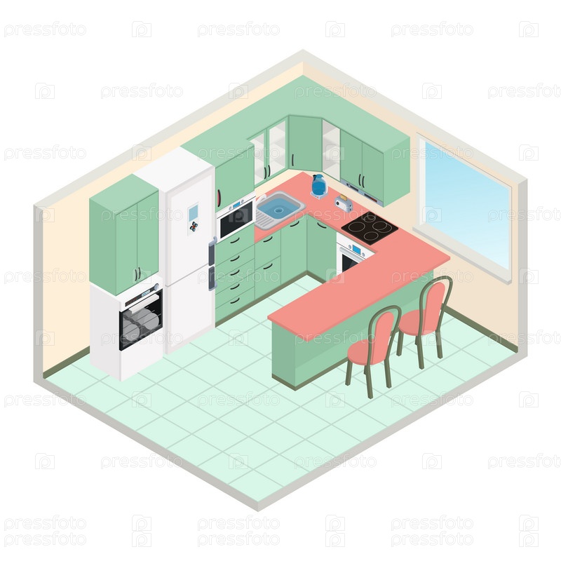 Кухня интерьера - иллюстрация 3D