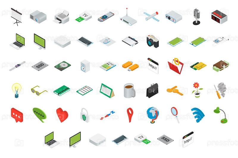 Большой набор иконок на тему компьютерной техники и оргтехники