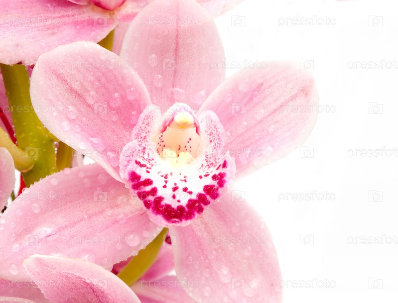 Мокрые розовые орхидеи на белом фоне