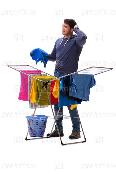 Мужчина гладит белье