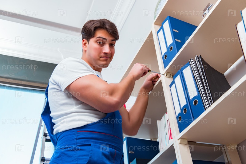 Мужчина чинит полку