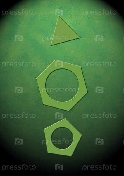 Зеленые геометрические фигуры на темно-зеленом фоне