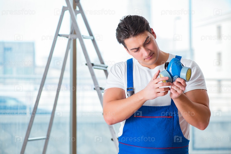 Молодой работник с маской защиты лица