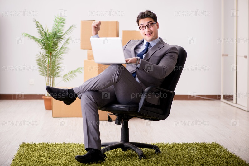 Бизнесмен на стуле с ноутбуком