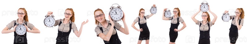 Хорошенькая молодая девушка с будильником