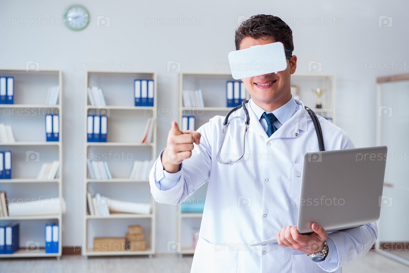 Молодой врач с виртуальной реальностью