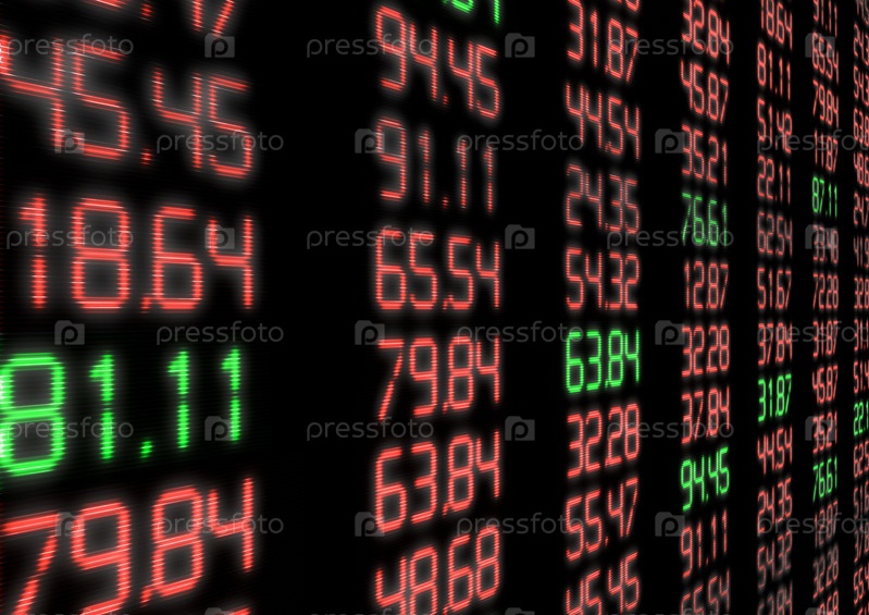 Фондовый рынок. Красные и зеленые цифры на черном экране