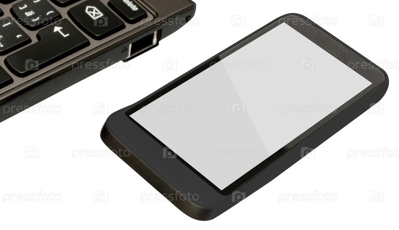 Фиктивный мобильный телефон и ноутбук на белом фоне с обтравочными контурами