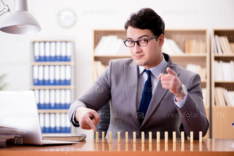 Бизнесмен с домино в офисе
