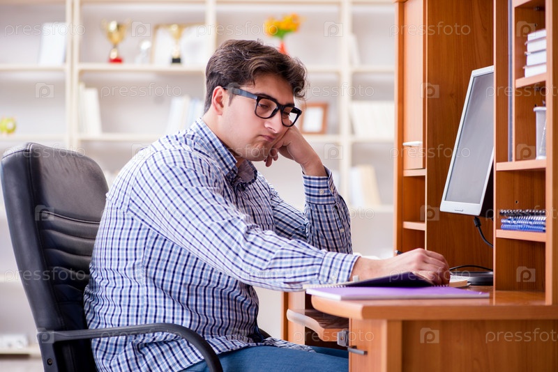 Молодой студент за компьютером