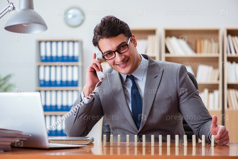 Бизнесмен с домино в офисе