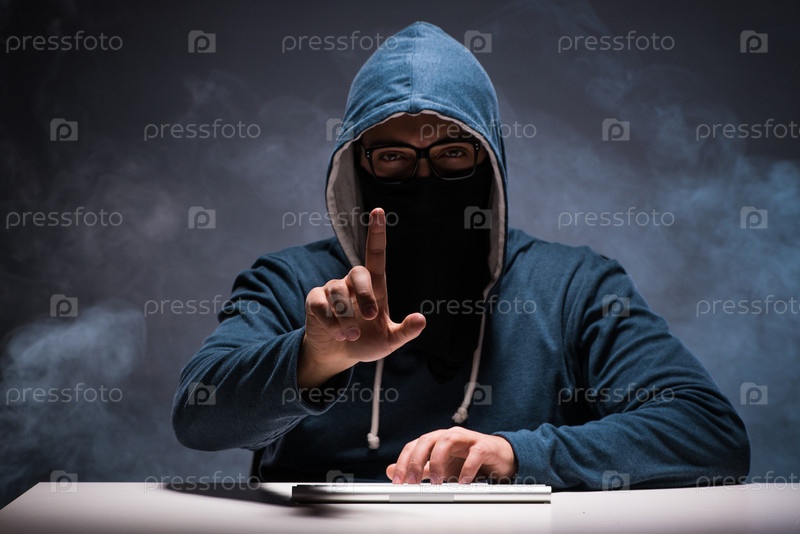 Хакер работает в темной комнате