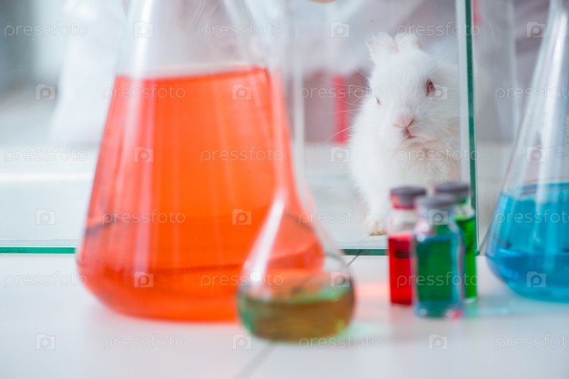 Белый кролик в научной лаборатории