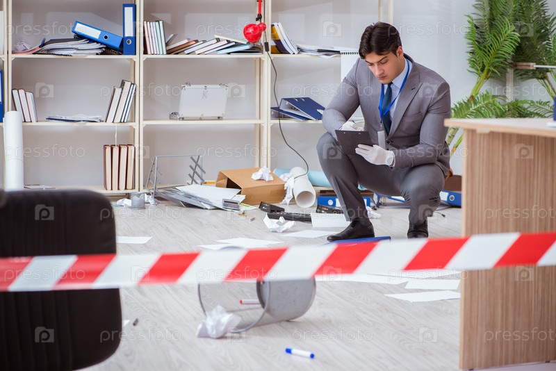 Молодой человек в ходе расследования преступлений в офисе
