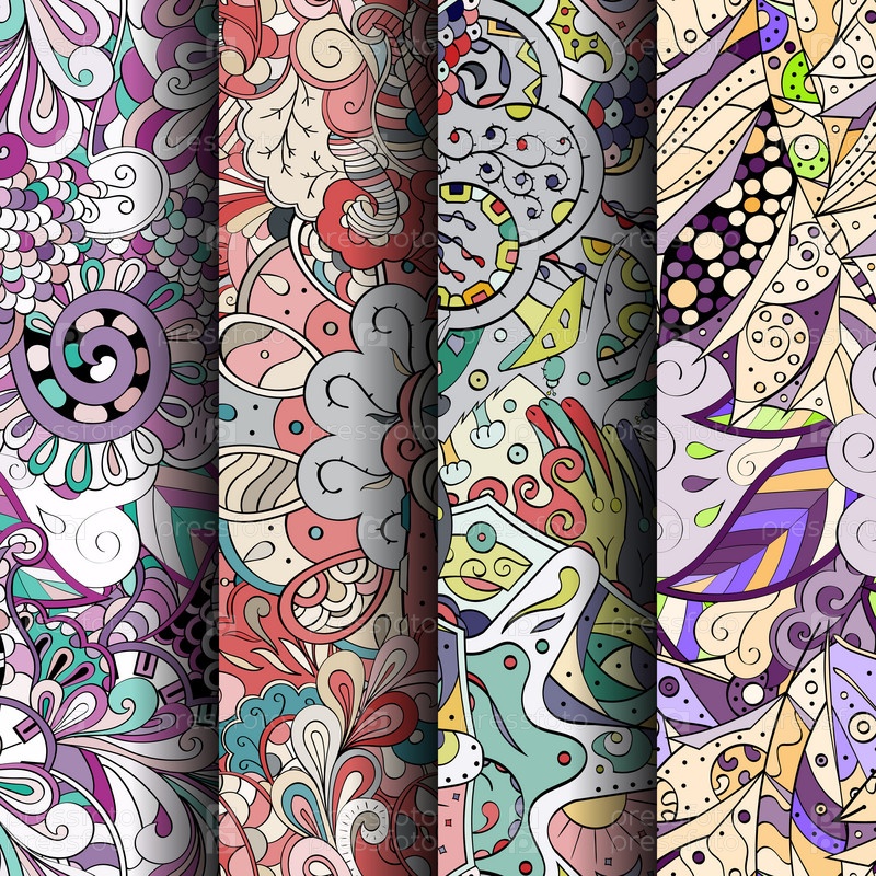 Набор ажурных красочных бесшовных узоров