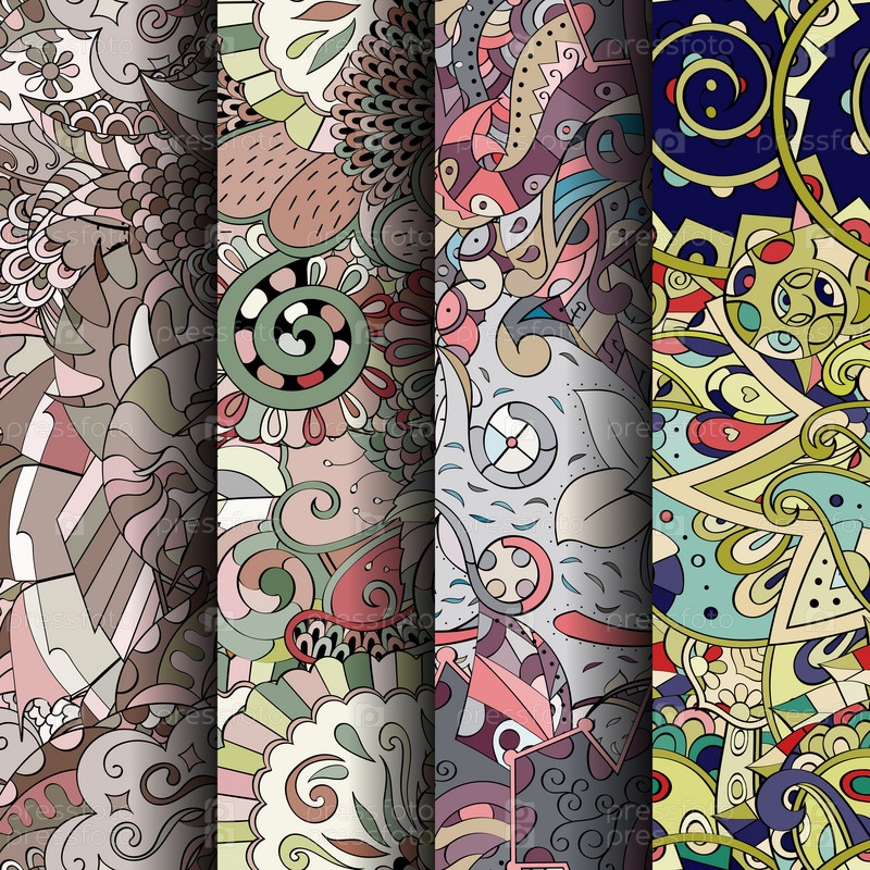 Набор ажурных красочных бесшовных узоров этническими мотивами. Вектор
