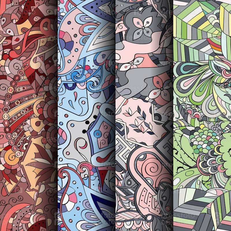 Набор ажурных красочных бесшовных узоров