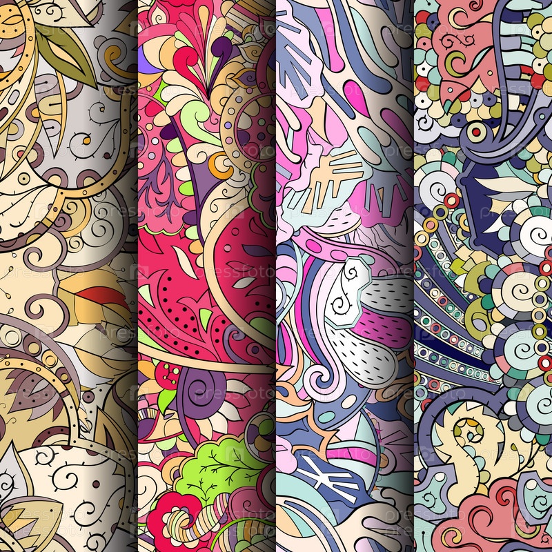Набор ажурных красочных бесшовных узоров