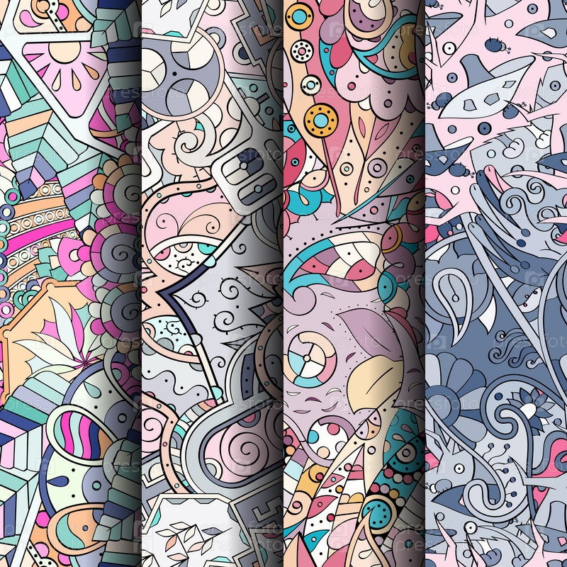 Набор ажурных красочных бесшовных узоров