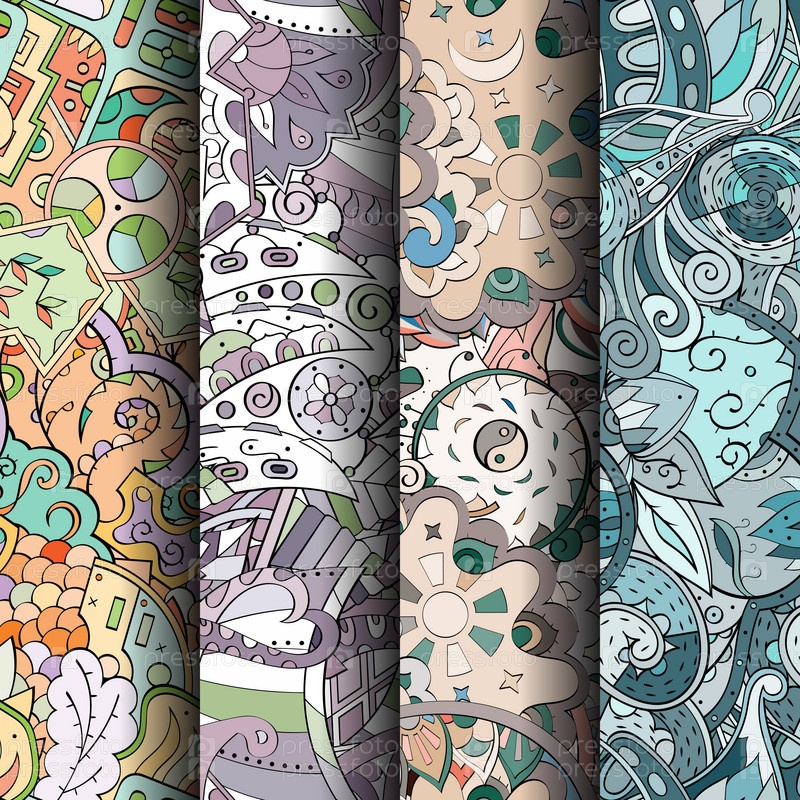 Набор ажурных красочных бесшовных узоров