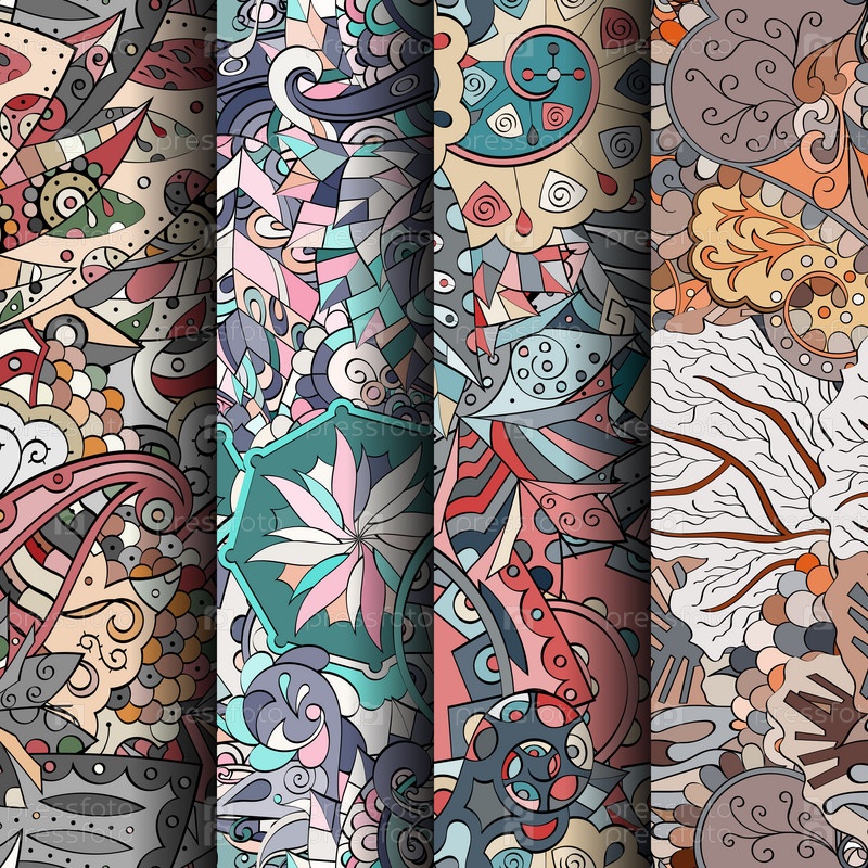 Набор ажурных красочных бесшовных узоров