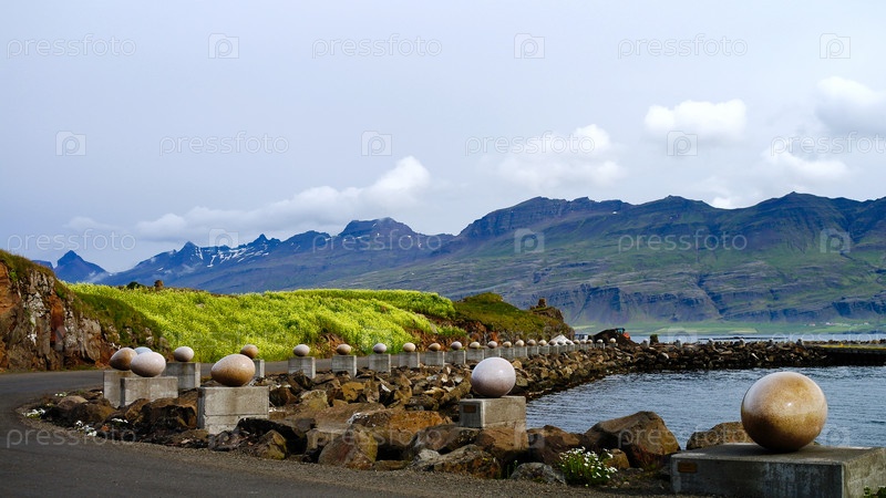 Каменные яйца в памятнике Мерри-Бэй, Джупивогур, Исландия