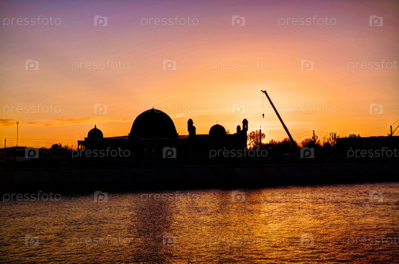 Закат над мечетью в Нукусе, Каракалпакстан, Узбекистан