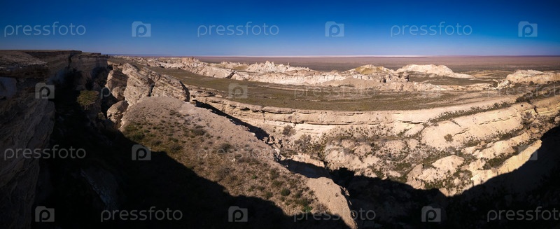 Аральское море от края плато Устюрта на закате в Каракалпакстане, Узбекистан