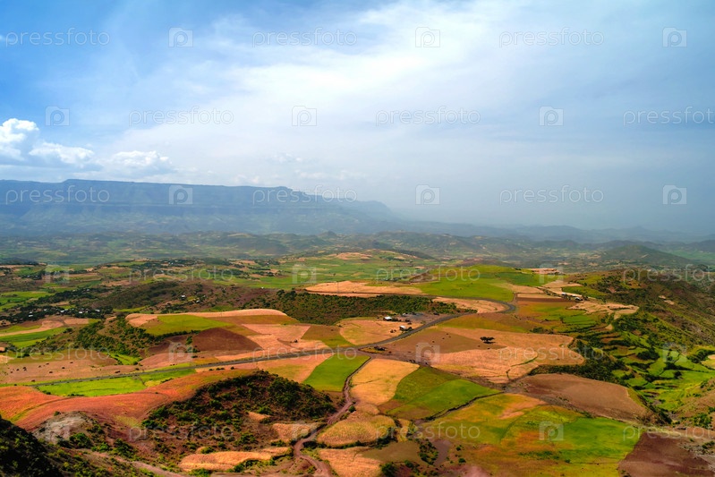 Семианские горы и долины с полями тэффа вокруг Лалибела в Эфиопии