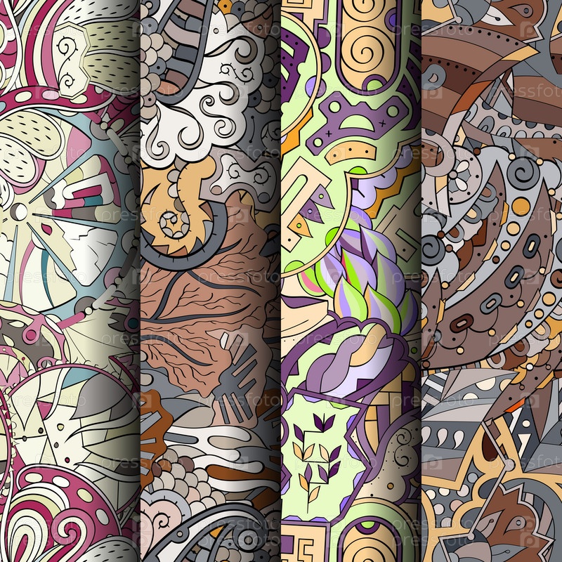 Набор ажурных красочных бесшовных узоров