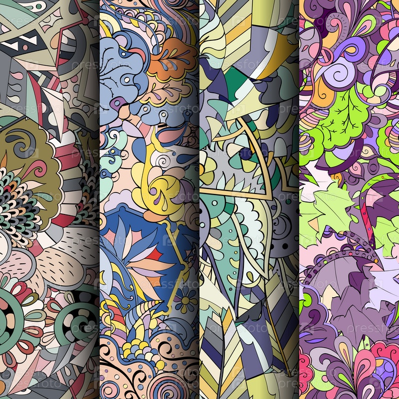 Набор ажурных красочных бесшовных узоров